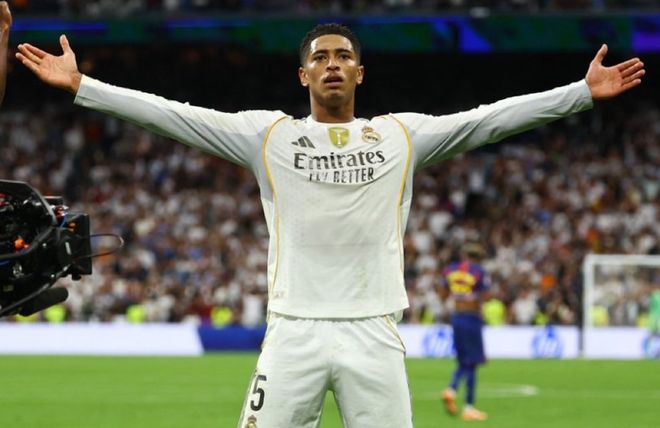 雷速體育10月27日訊 西甲第10輪,皇家馬德里主場同巴塞羅那展開國家德比。比賽進行到90分鐘時,貝林厄姆被替換下場。這場比賽里,貝林厄姆在場上傳射建功,可謂星光四射!